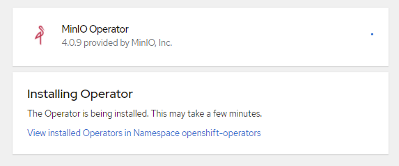 You can deploy the MinIO Kubernetes Operator through the Red Hat® OpenShift® Container Platform 4.7+. You can deploy and manage MinIO Tenants through OpenShift after deploying the MinIO Operator. This procedure includes instructions for the following deployment paths: